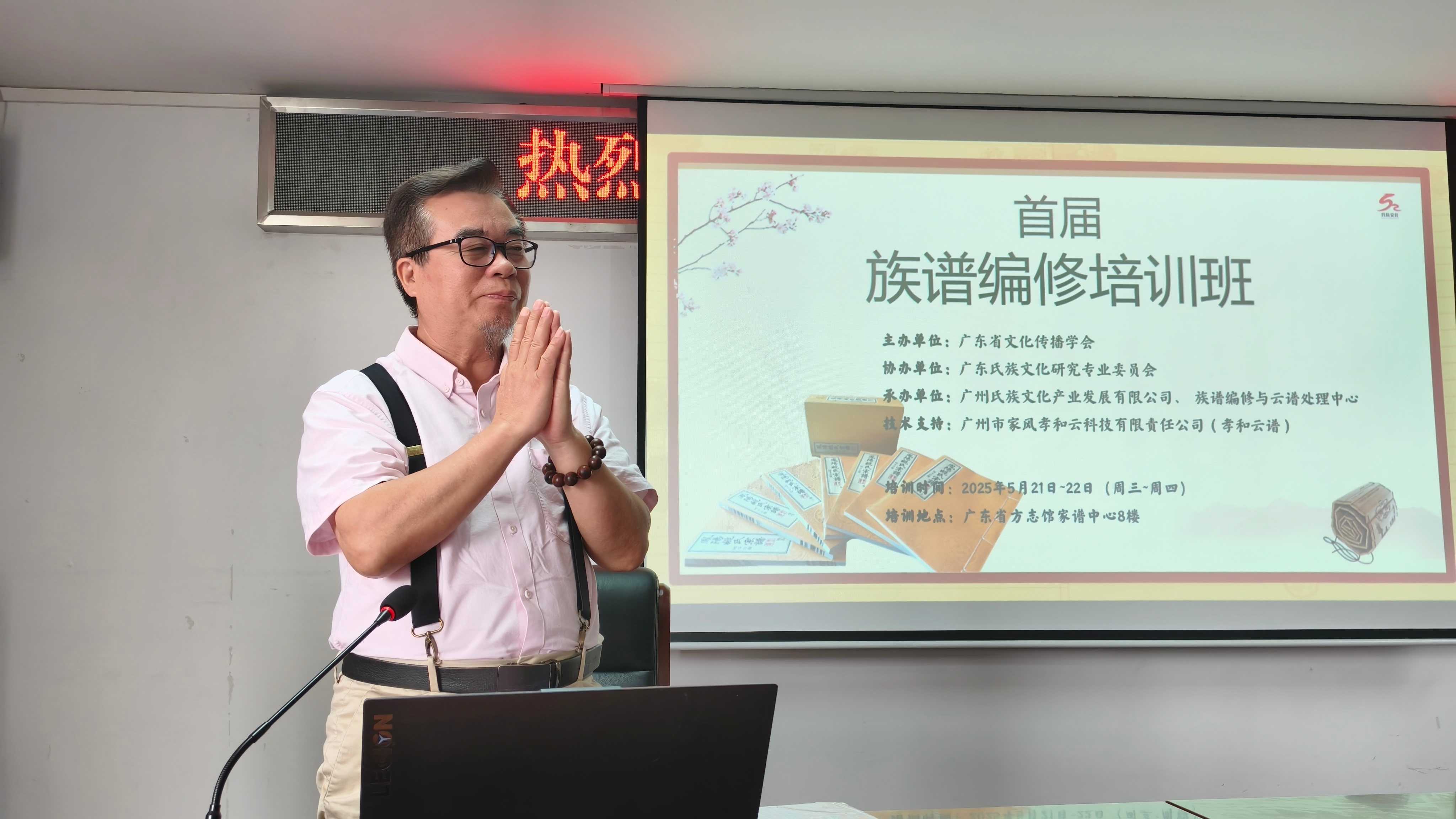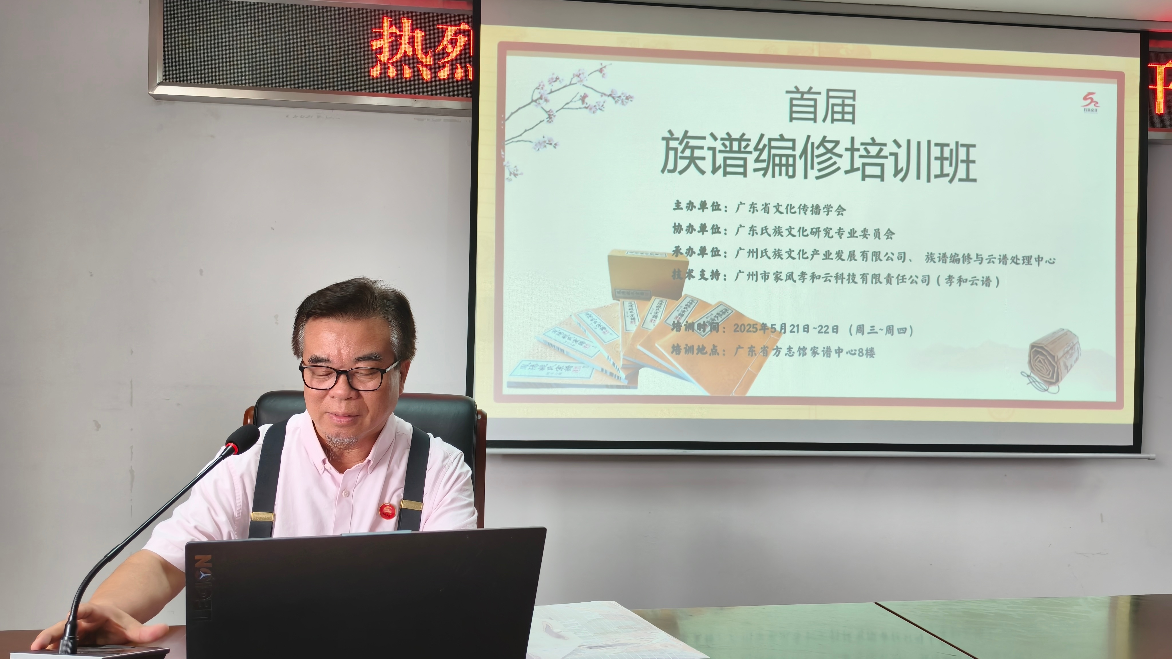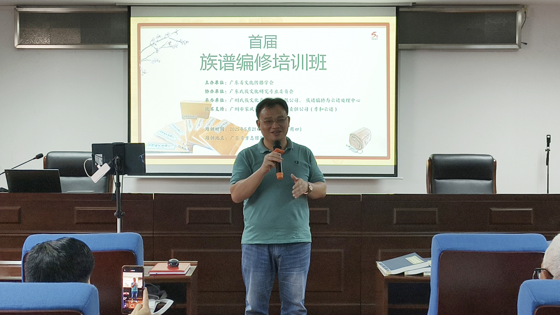 5 月 21 日下午 2 点 30 分,族谱编修培训班正式开班。广东省方志馆副馆长杜冬生在开班致辞中指出,首期族谱编修培训班在方志馆开班具有特殊意义。此次培训班旨在提升全省族谱编修水平,解决当前族谱编修中存在的不规范问题。授课专家均经过精心挑选,包括世代修谱的夏侯捷老师、古籍修复专家林明博士、传统文化知名学者吴廷玉教授等。期望通过本次培训,将广东族谱编修水平提升到更高层次。