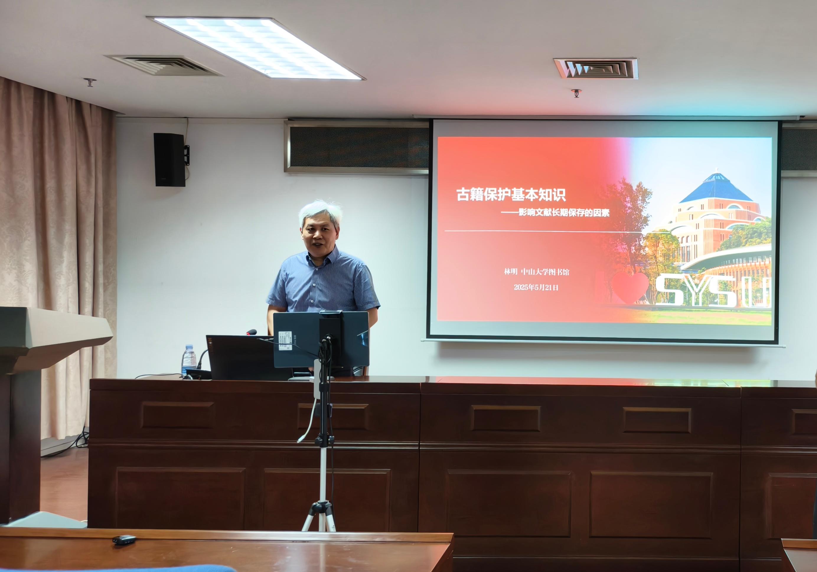 晚上 7 点,中山大学图书馆常务副馆长、国家级古籍修复中心主任林明博士为学员们带来《古籍保护基础知识》课程,让学员们难得地聆听了国家级古籍修复专家的面授。
