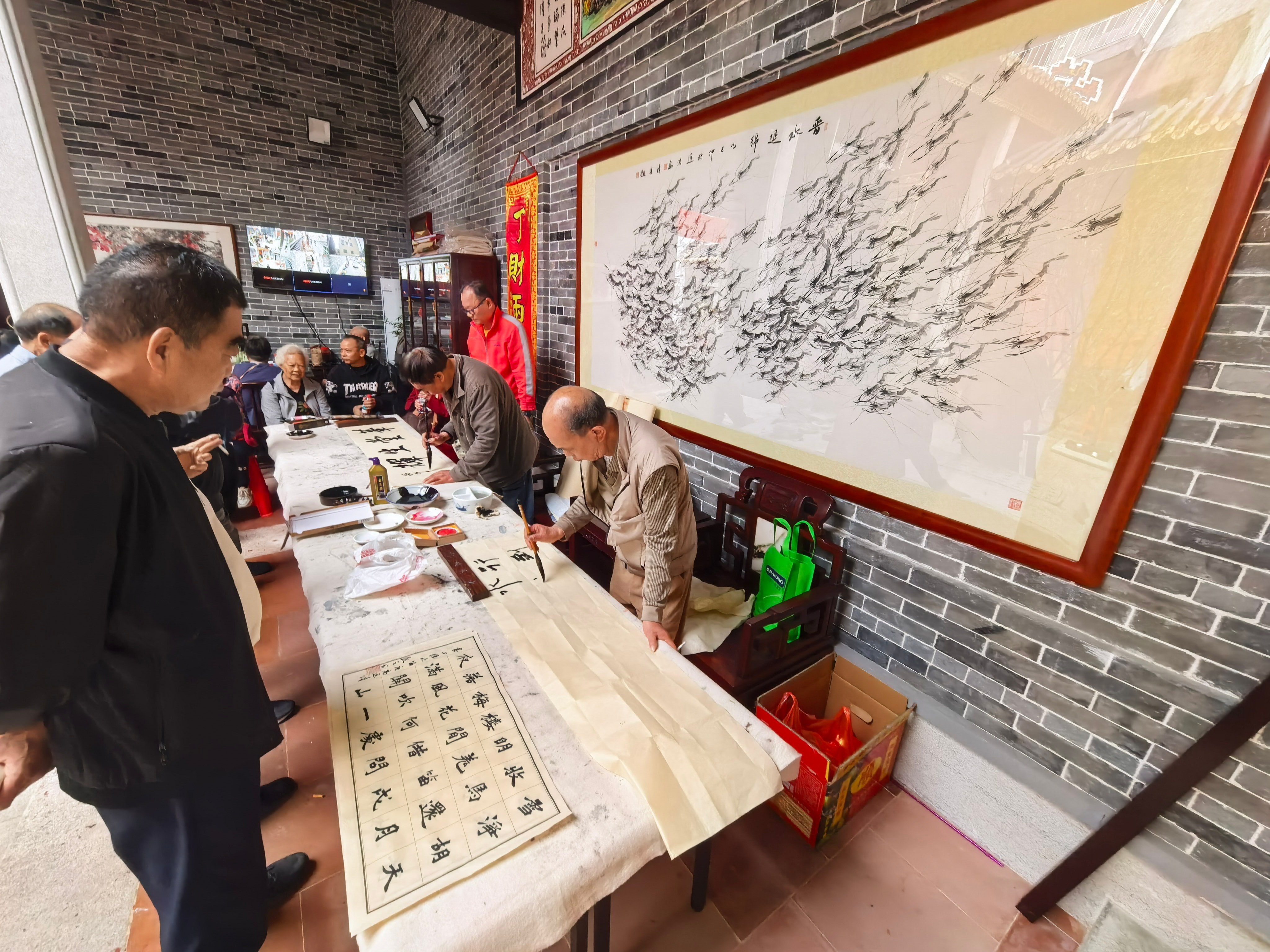 活动期间,还举行了现场书画展示环节,多位来自黄岐书画家协会的会员即席挥毫,以笔墨传情,为灯酒会增添文化气息。